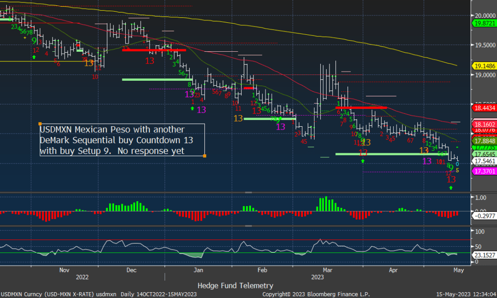No entraré en detalles sobre la herramienta de timming usada por hedge funds, fondos de pensiones y dinero de verdad, pero en análisis de DeMark (realizado por el respetable Tom Thornton de Hedge Fund Telemetry) está señalando un posible movimiento exhaustivo.